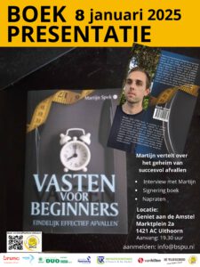 Op laagdrempelige manier maakt Martijn met zijn boek Vasten voor beginners deze techniek toegankelijk voor mensen die klaar zijn met hun overgewicht. Met een persoonlijke noot over zijn eigen ervaringen, start hij samen met de lezer hun nieuwe reis. Hierbij deelt hij zowel informatie als praktische tips hoe mensen stap voor stap met vasten kunnen starten, en bovenal, hoe zij het ook kunnen volhouden. Dit boek wordt vanaf vrijdag 11 oktober uitgegeven door Uitgeverij Boekscout.