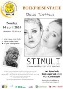 Weleens gevraagd of hij je mocht fotograferen omdat er ‘iets’ in jou hem aantrok? Dat zou zomaar de Uithoornse fotograaf en schrijver Chris Treffers hebben kunnen zijn. Je hebt waarschijnlijk nee gezegd of je foto heeft het niet gehaald naar zijn prachtige boek “Stimuli”. Op zondagmiddag 14 april geeft het Boek- en SchrijfPlatform Uithoorn (BSPU) hem de gelegenheid dat te presenteren in Het Spoorhuis. De prachtige foto’s zullen vergroot weergegeven worden en Chris zal daarbij uit de doeken doen waarom hij nou juist die persoon in die setting wilde vastleggen.