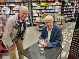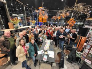 Niettemin werd het boek een succes en Jaap begon aan zijn tweede boek. ‘Onder gepensioneerden’ verscheen 5 oktober. Jaap voert hierin twaalf gepensioneerden op die gezamenlijk iets willen ondernemen, maar ieder zo hun eigen issues hebben. Het is geen vervolg op ‘De ontgroening van een eerstejaars gepensioneerde’, maar speelt zich wel af in dezelfde levensfase van de personages. De presentatie vond plaats op 23 november bij boekhandel Venstra in Amstelveen, een toepasselijke en grotere locatie. De opkomst was groot, wel een man of 60-70, onder wie ook enkele Uithoornaars. Het interview verliep soepel. Jaap praatte honderduit en met veel humor. Die humor hoorden we ook terug in de stukjes die hij ter plekke voorlas.